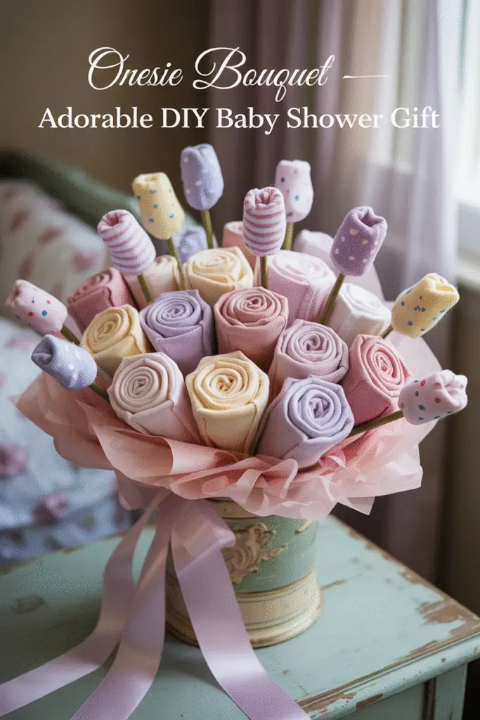 Diaper cakes remain the most popular DIY baby shower gift because they combine practicality with impressive visual presentation. These tiered creations use rolled diapers arranged to resemble a traditional cake.