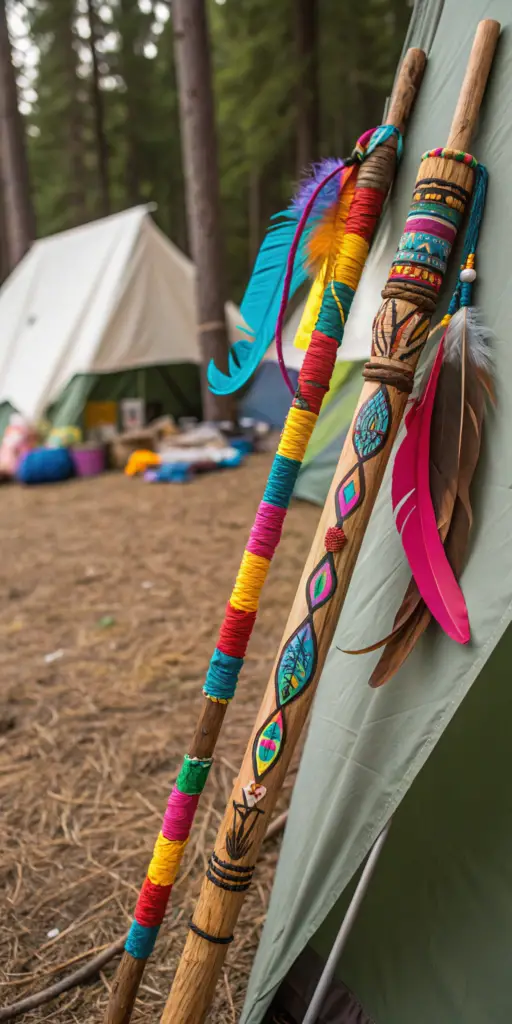 Walking sticks are more than just a hiking aid—they’re a chance for kids to get creative and personalize their campsite gear. Decorating walking sticks keeps children engaged while also giving them a functional item they can use on hikes. A