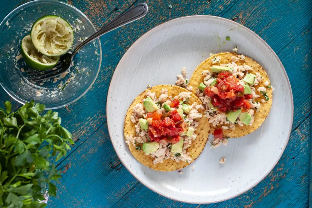 Tuna Tostadas is made with canned tuna with a crispy tortilla base.