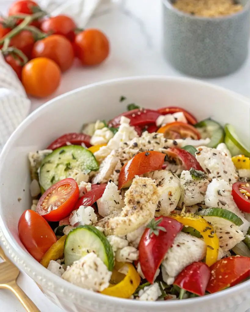 This Mediterranean-inspired crab salad combines fresh veggies, feta, and roasted red peppers for a cozy fall meal.