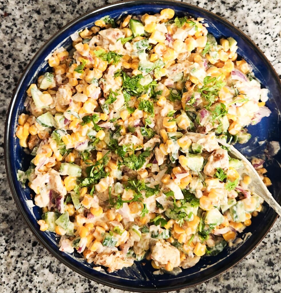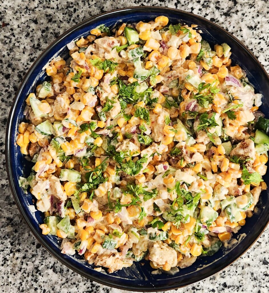This creamy chicken corn salad is one of those easy recipes you end up making all summer long. It’s fresh, a little tangy, and just creamy enough to feel satisfying without being heavy.