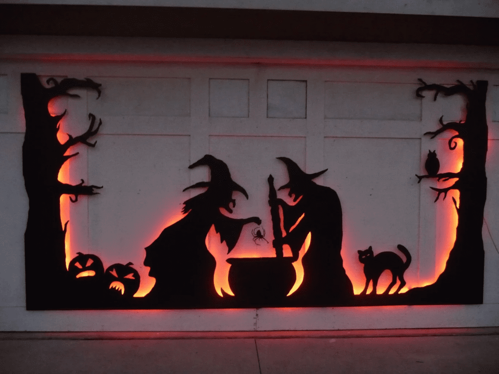Create a dramatic effect by cutting out a large silhouette of a witch, ghost, or other Halloween character and attaching it to your door.