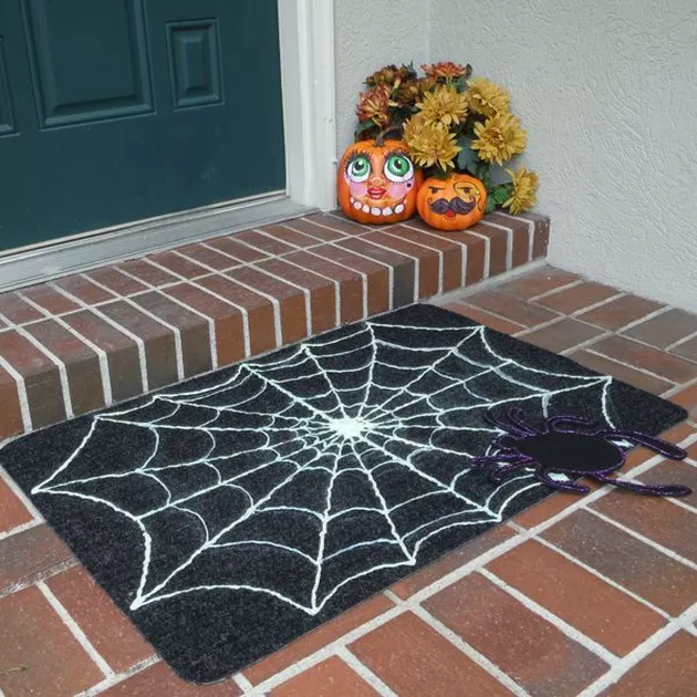 Create a spooky spiderweb doormat using white fabric paint. Draw on a spider for extra creepiness.