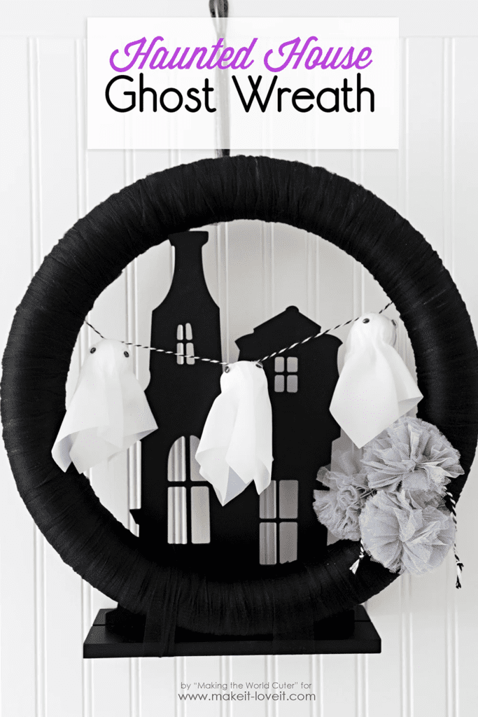 Create a ghostly wreath by attaching white fabric or paper ghosts to a grapevine wreath.