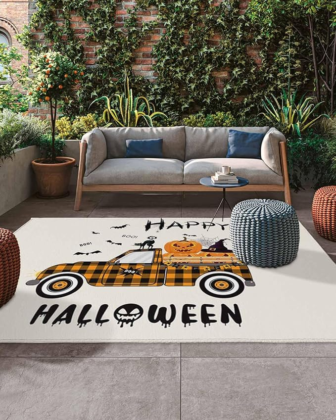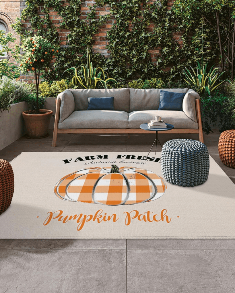 Paint a pumpkin patch design on a plain doormat or rug for a fun and festive touch.