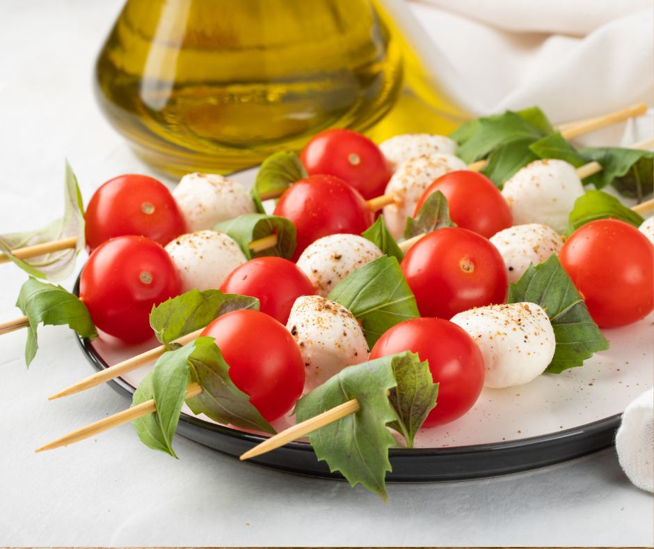 Mini Caprese skewers are just the appetizer you are looking for! We are taking classic Caprese salad ingredients and making them portable for a quick and easy make-ahead Gluten-Free Appetizer that is sure to please – and is ready in 15 minutes. It’s a whole lot of simple and a WHOLE LOTTA YUM!