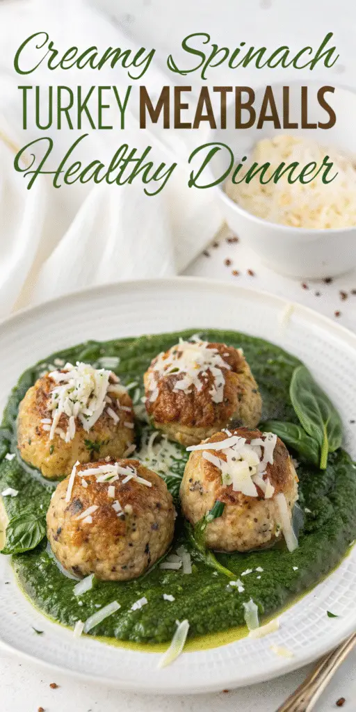 Light yet indulgent turkey meatballs with a creamy spinach sauce for a wholesome, cozy dish.