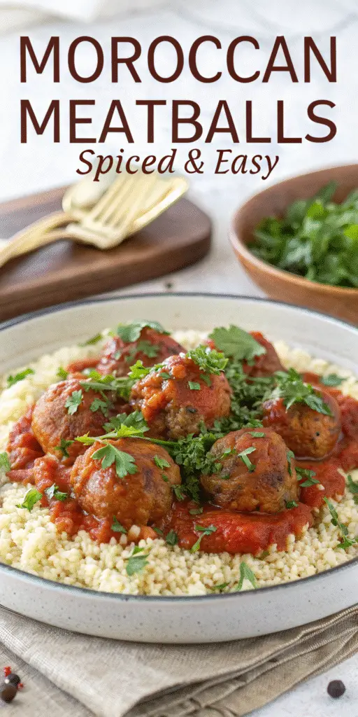 Spiced beef meatballs in a rich tomato sauce—perfect over couscous.