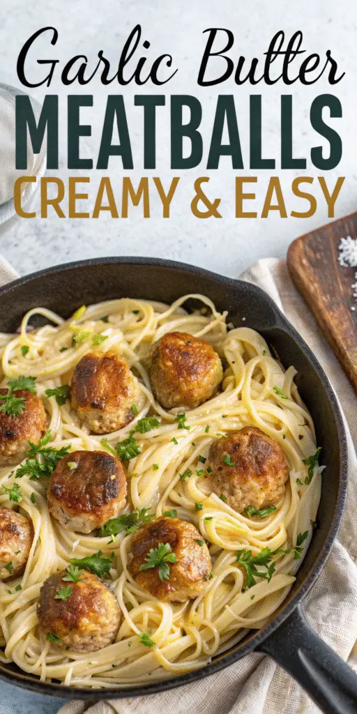 A decadent, creamy pasta dish with buttery garlic meatballs that’s perfect for a family-friendly dinner or a cozy date night.