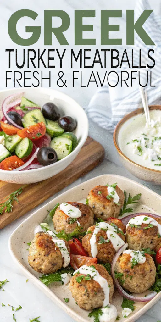 Mediterranean-inspired turkey meatballs paired with creamy, cool tzatziki. Fresh and flavorful!