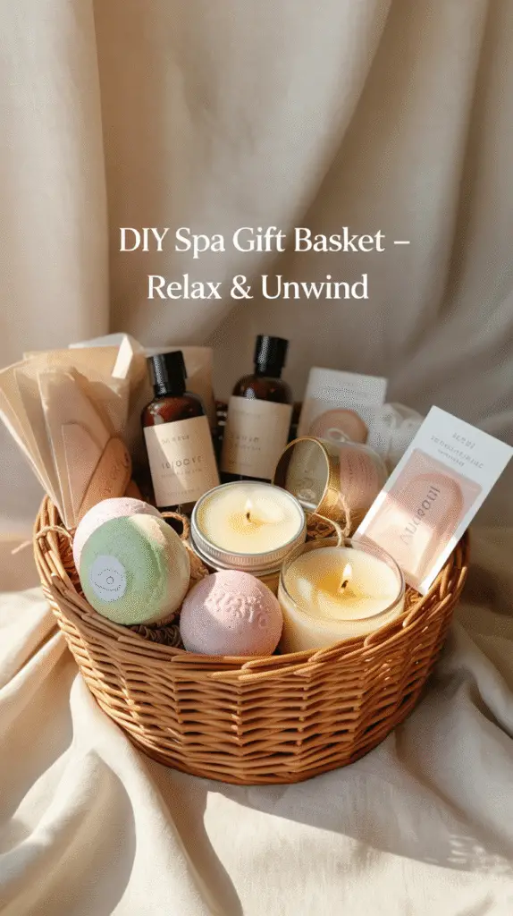 Fill a wicker basket with a bath bomb, hand-poured soy candle, and travel-size lotion. Add a handwritten “Relax” card tied with twine. Mini spa retreat for under $20.