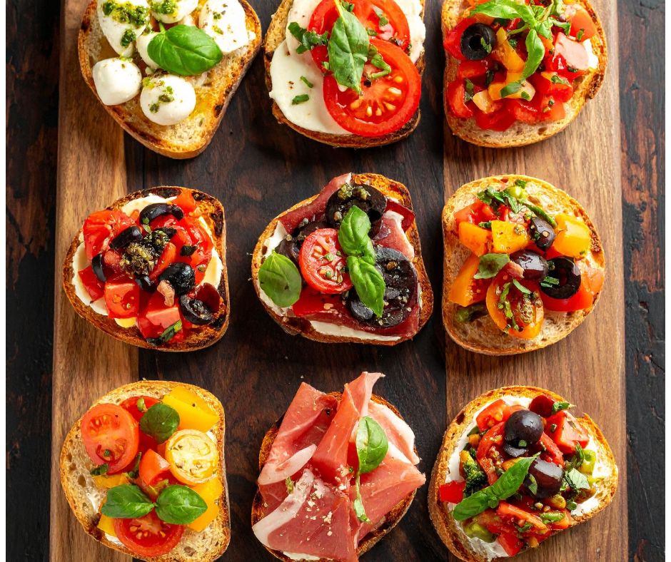 • On a charcuterie board — add assembled bruschetta pieces to a board with cured meats, cheeses, and olives for a more elaborate spread