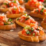 The bread needs to be thick enough to hold toppings without collapsing (cut at 1/2 to 3/4 inch), toasted in the oven or on a grill rather than in a toaster, and rubbed with raw garlic while still hot. That garlic rub step is not optional — it’s what gives bruschetta that distinct savory depth that makes people ask what you did differently.