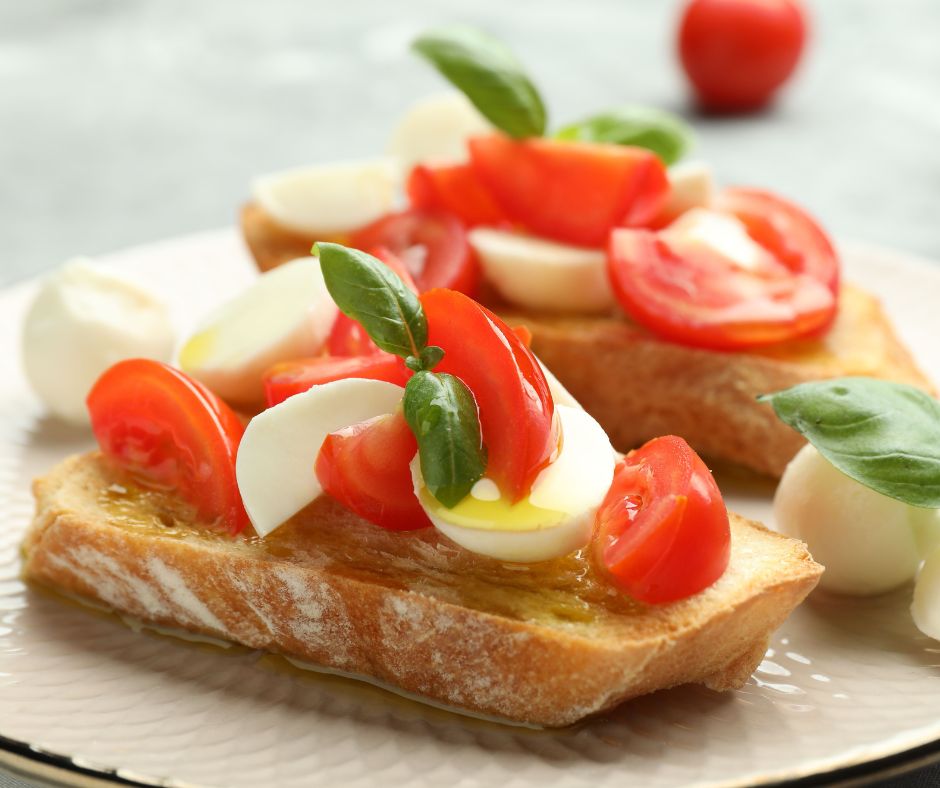 Arrange the toasted bread on a platter. Spoon the tomato topping generously onto each piece — don’t be stingy, you want a real mound of topping, not a thin smear. If you’re adding fresh mozzarella, place a small piece on each slice before the tomatoes, or tuck pieces in between after.