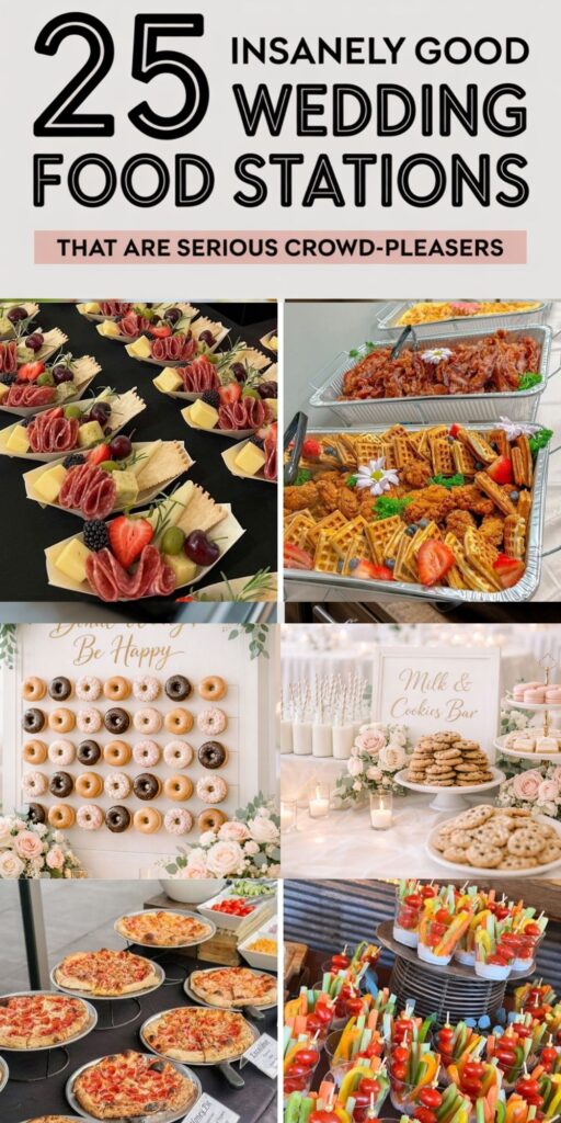 Below are 25 creative wedding food station ideas that are easy to recreate, crowd-pleasing, and perfect for weddings of all sizes.